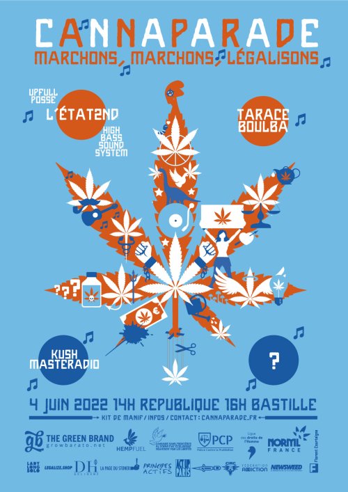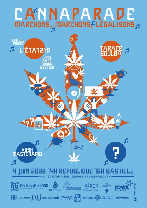 Devinette aux internautes passant par ici : ci-dessous il y a deux versions de l’affiche de la Cannaparade 2022, un petit détail les différencie, saura-tu le retrouver ?
