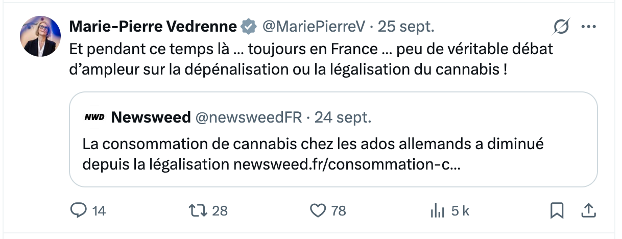 Le Gouvernement Lecornu doit légaliser le cannabis. S’il veut diminuer les dépenses et augmenter les recettes, il peut décider d’économiser 2 Milliards d’euros en renonçant à une politique de répression inefficace, et, de surcroit, récupérer plusieurs milliards d’euros de recettes en régulant l’accès au cannabis comme on le fait avec le tabac ou l’alcool…