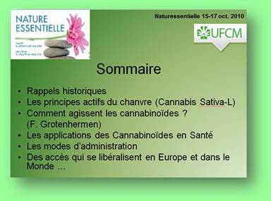 Les Editions Indica se joignent à l’Association Union Francophone pour les Cannabinoïdes en Médecine (UFCM – www.ufcmed.org ) pour vous convier à participer au SalonNATURESSENTIELLE 2010 qui se tiendra à Dijon du 15 au 17 octobre prochain.