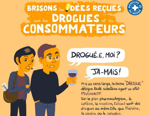 Médecins du Monde attaque les idées reçues sur les Drogues et les personnes qui en consomment.